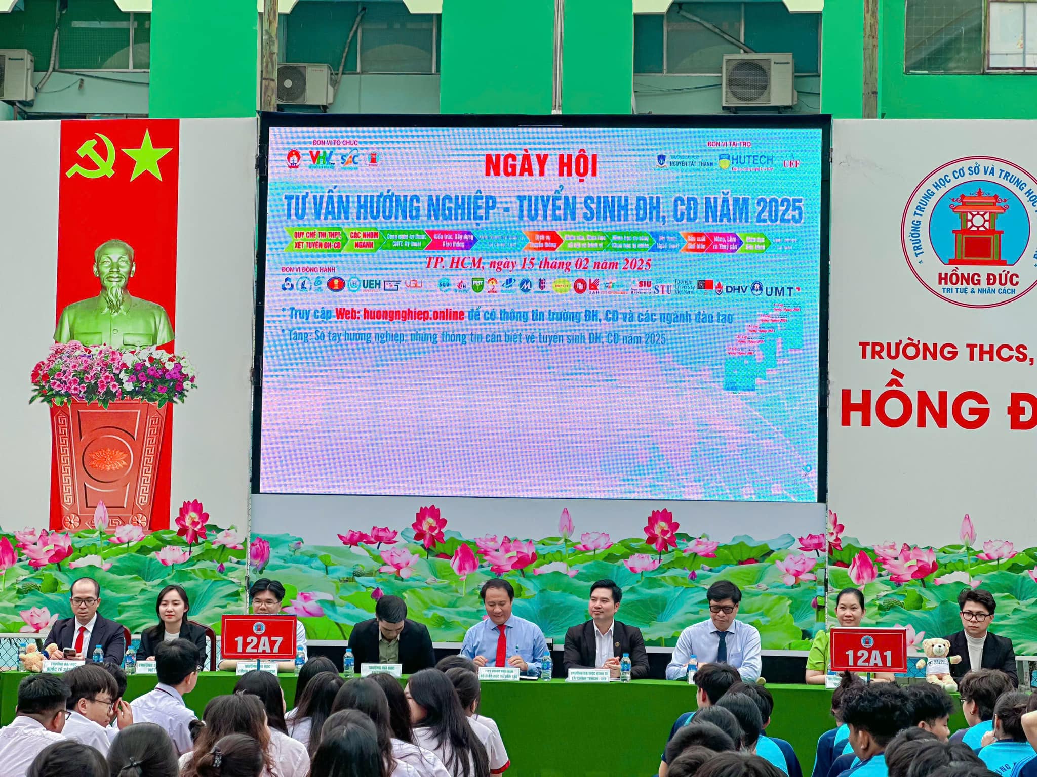 Ngày hội Hướng nghiệp & Tuyển sinh vào các trường Đại học 2025 tại Trường THCS, THPT Hồng Đức đã diễn ra thành công rực rỡ, mang đến nhiều thông tin bổ ích và trải nghiệm quý giá cho học sinh!
